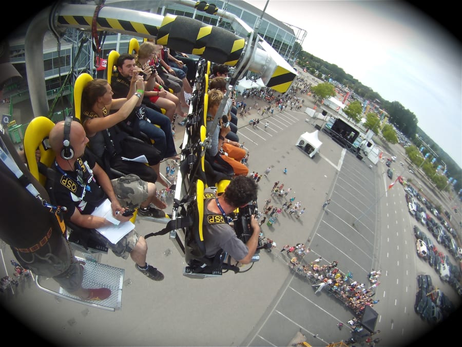 Etter at deltakerne er fastspent i setet på 5 punkter av operatøren, vil hele systemet løftes til en høyde på 50 mtr. med kran eller tårnkran. På 50 meter utsikten er overveldende og på en klar dag kan du se over 25 km!