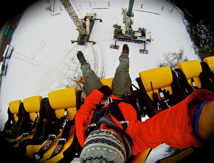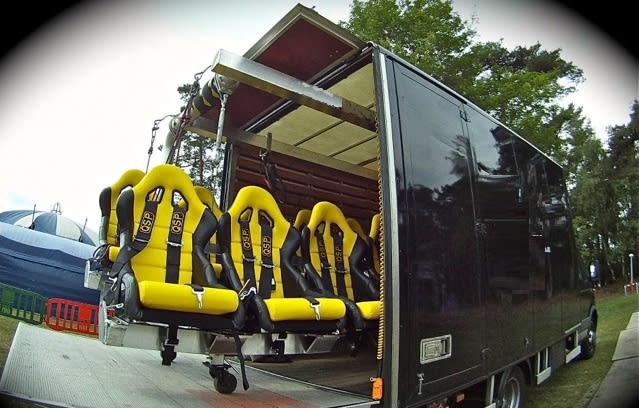There is a special aspect to this adreniline ride system...........there is no floor underneath your feet !