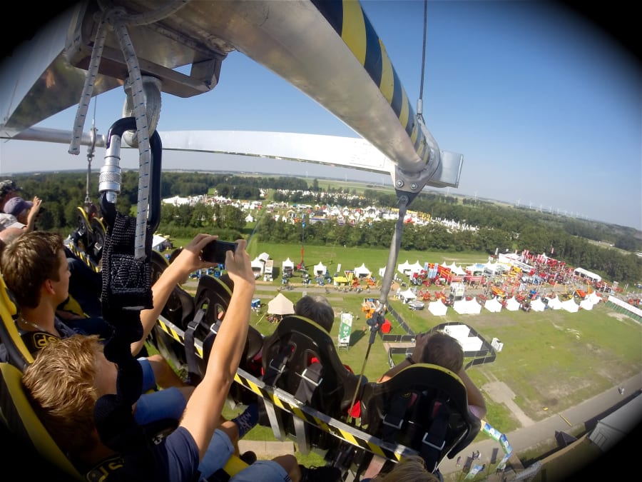 After the participants are strapped in the seat on 5 points by the operator, the complete system will be lifted to a height of 50 mtrs. with crane or tower crane. At 50 meters the view is overwhelming and on a clear day you can see over 25 km !