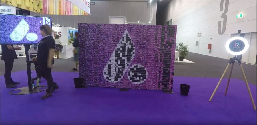 Gjester ved lanseringen inviteres til å legge inn nye bilder av det nye produktet til sosiale medier som deretter skrives ut og brukes til å lage mosaikken.