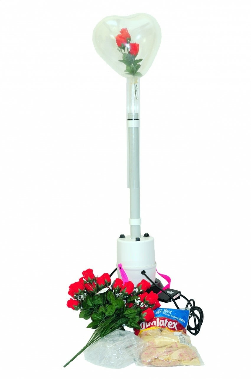 a floor-standing, balloon stuffing machine with a floral cylinder that produces truly outstanding balloon gifts. In no time, you can easily fill latex stuffing balloons with Teddy Bears, most gifts and flowers. Operate this portable balloon stuffer at shopping malls, convenience stores, florist shops, exhibitions, and any location with electricity.