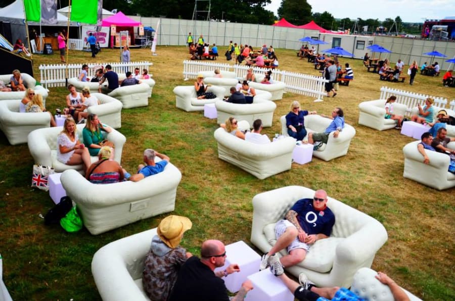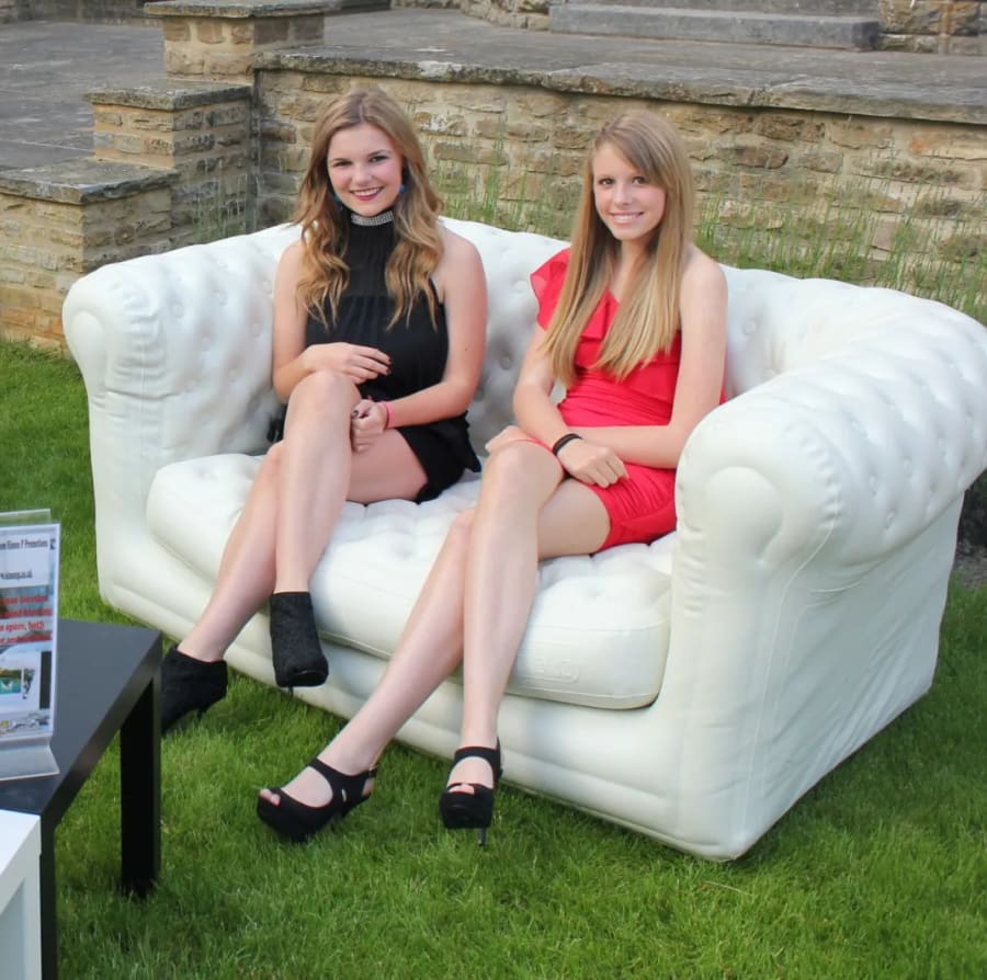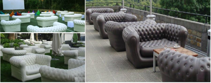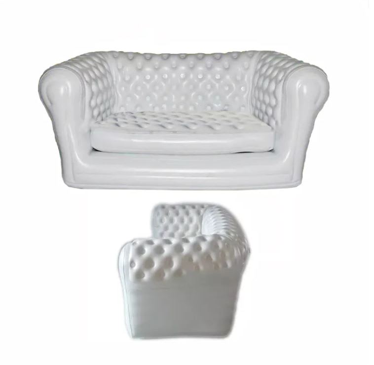 Why not rent stylish inflatable sofas in the style of the troditional chesterfield . These sofas are perfect for a garden party, company party or as furniture on a The sofa inflate in a couple of minutes using a electric pump.