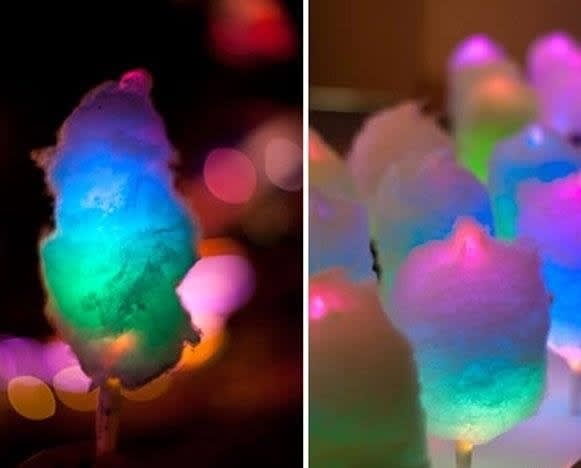 Who doesn’t love fluffy candyfloss? Rather than on a paper stick, this glow in the dark cotton candy is made on our LED stick that changes color while you eat it! In fact there are seven different light up modes to choose from!