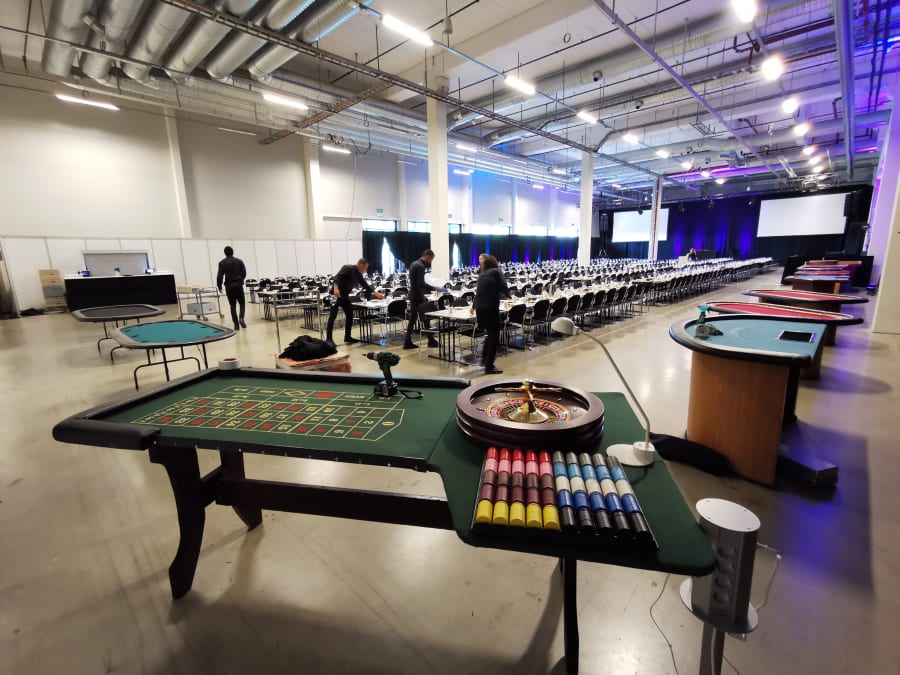 utleie av casinobord og casinoutstyr for bruk på arrangement.