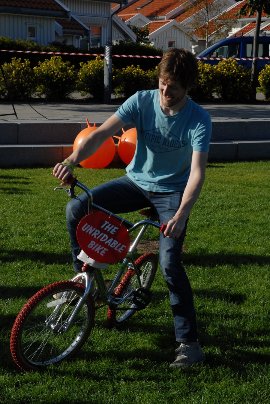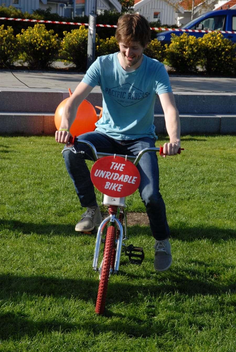 It looks just like a normal bicycle, but it holds a secret! Try to ride it 6 meters and you will see what this secret is……. A very funny and challenging task!