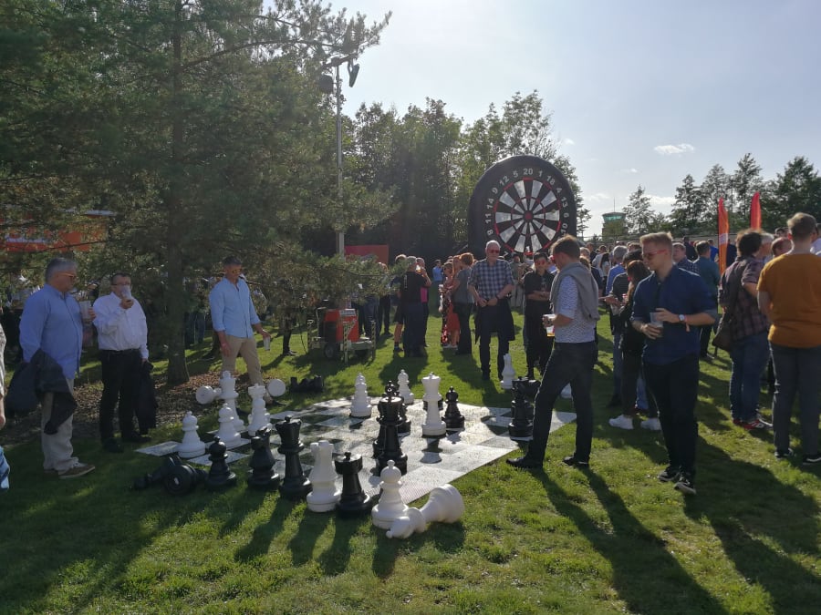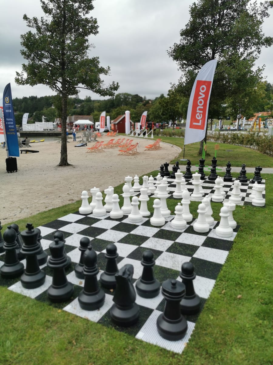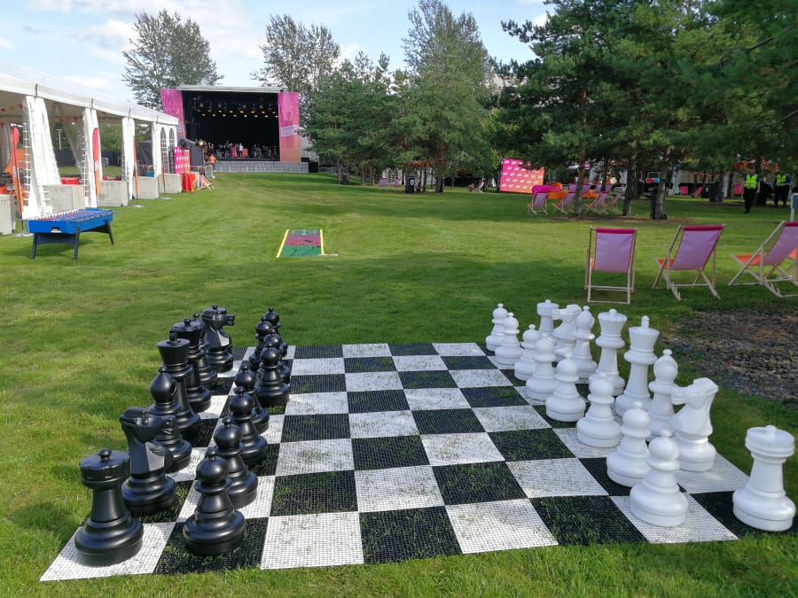 This classic game of skill and strategy can be made fun by using oversized playing pieces. The same rules apply, and the perception is just that little bit more unusual.