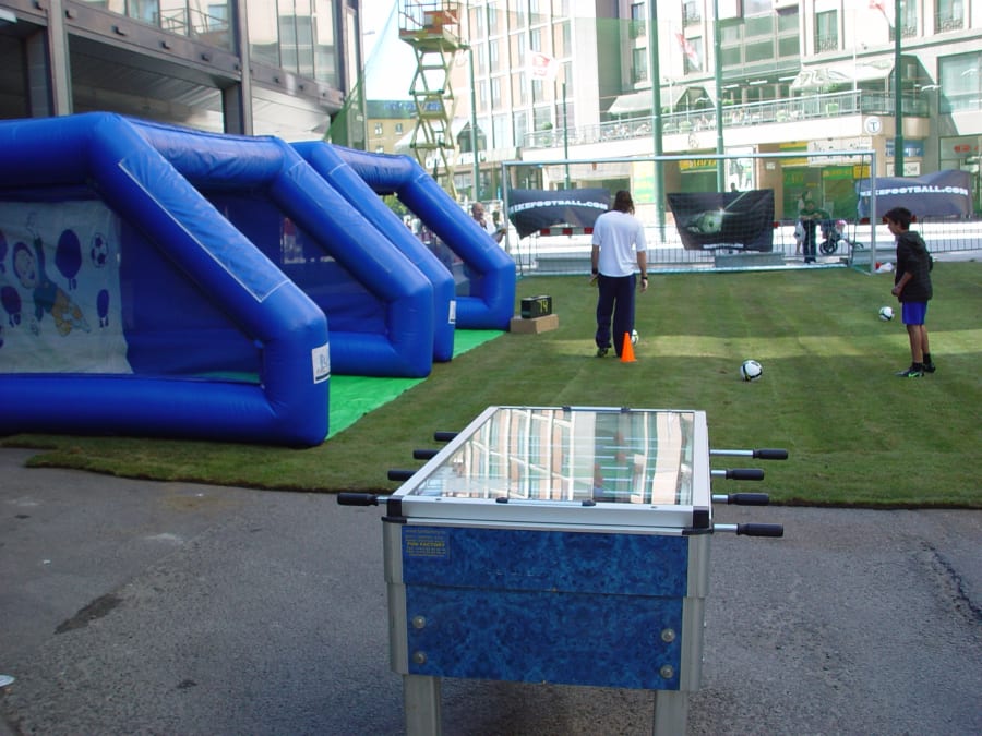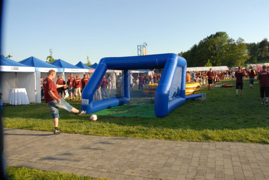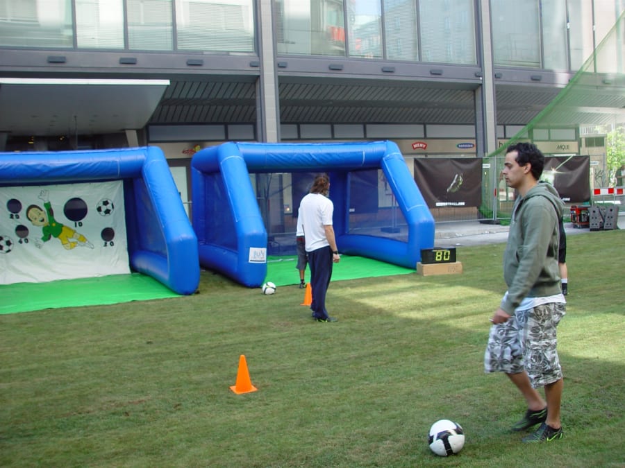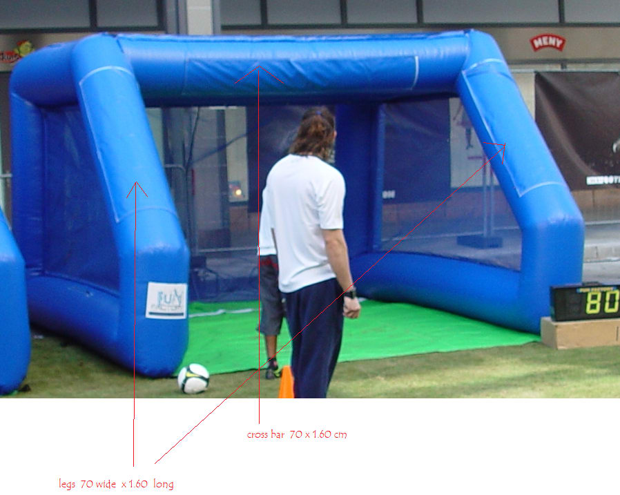 The system works by a tripod mounted radar camera behind the rear of the netted area, and the participant then kicks, throws, or launches their ball into the enclosed surround.
