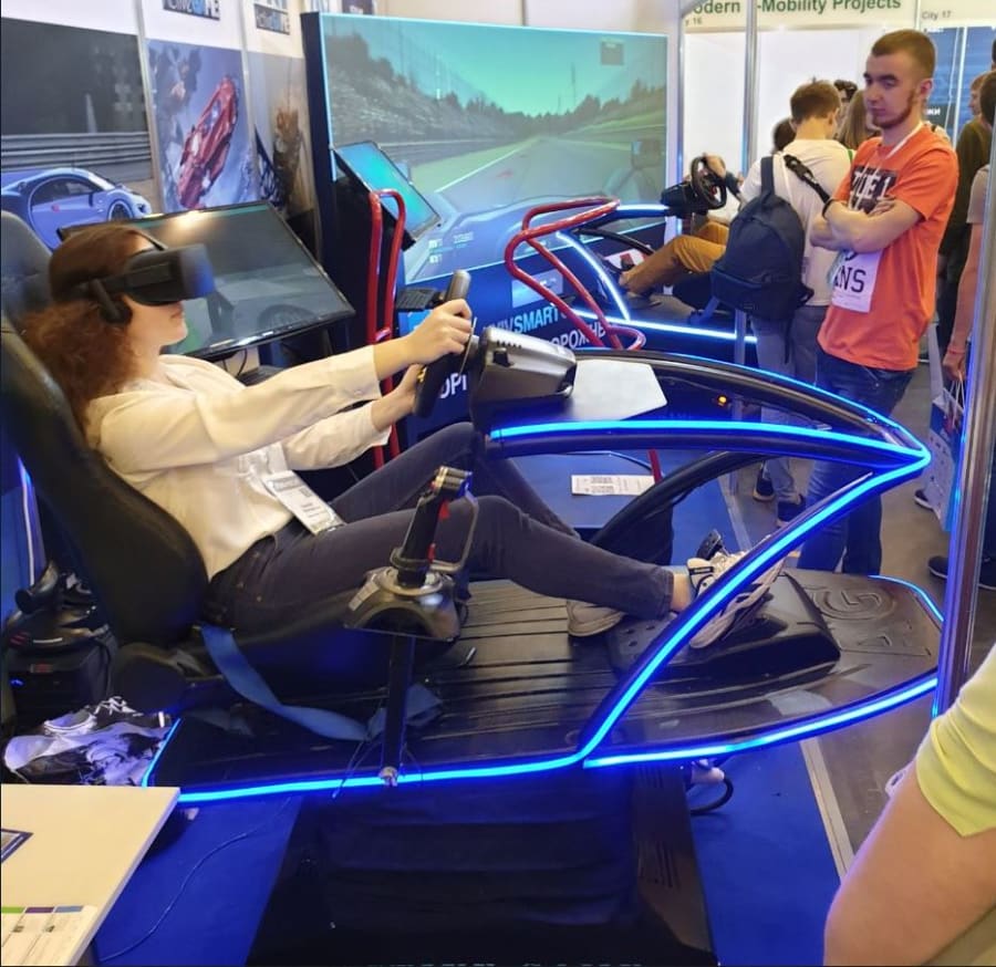 VR-briller gir 3D-visning i 360 grader så du kan se rundt deg når du sitter i den virtuelle bilen. Grafikken er så imponerende at du kan se regndråper på frontruten, solstråler gjennom trær, dessuten kjøre i tåke som gir en spennende opplevelse.