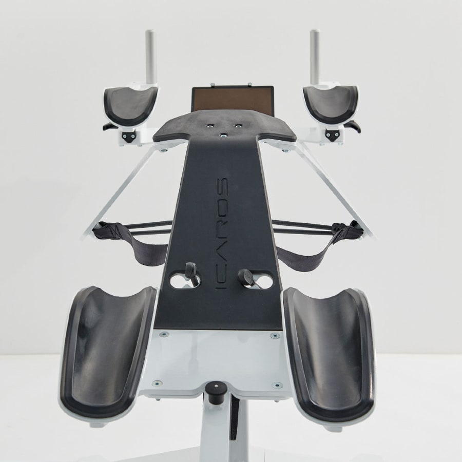Icaros is a gyroscopic device that the player lies in a horizontal position to control the movement. The pilot is using balance, coordination, core muscle tension and reaction to steer through three dimensional virtual worlds. . You can either fly over mountains, challenge your opponents in to a air races and shoot down drones, dive with sea creatures, protect the reef from evil submarines or jump out of an orbiting satellite to Earth.