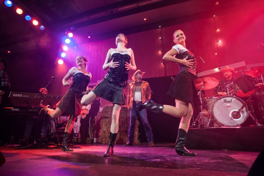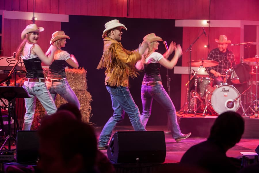 As the meal draws to end it is time to welcome the Good Time Gals to the stage. These lively young dancers in American stars & stripes costumes complete with their caller will get you all dancing in true Western style, from the Sheriff to a Ranch Hand.